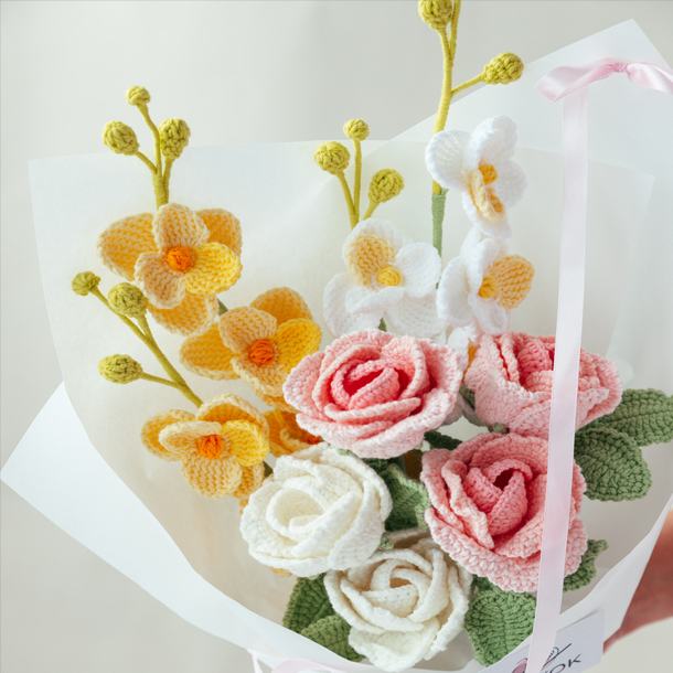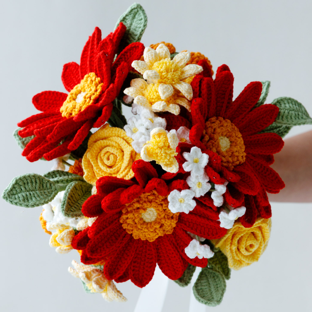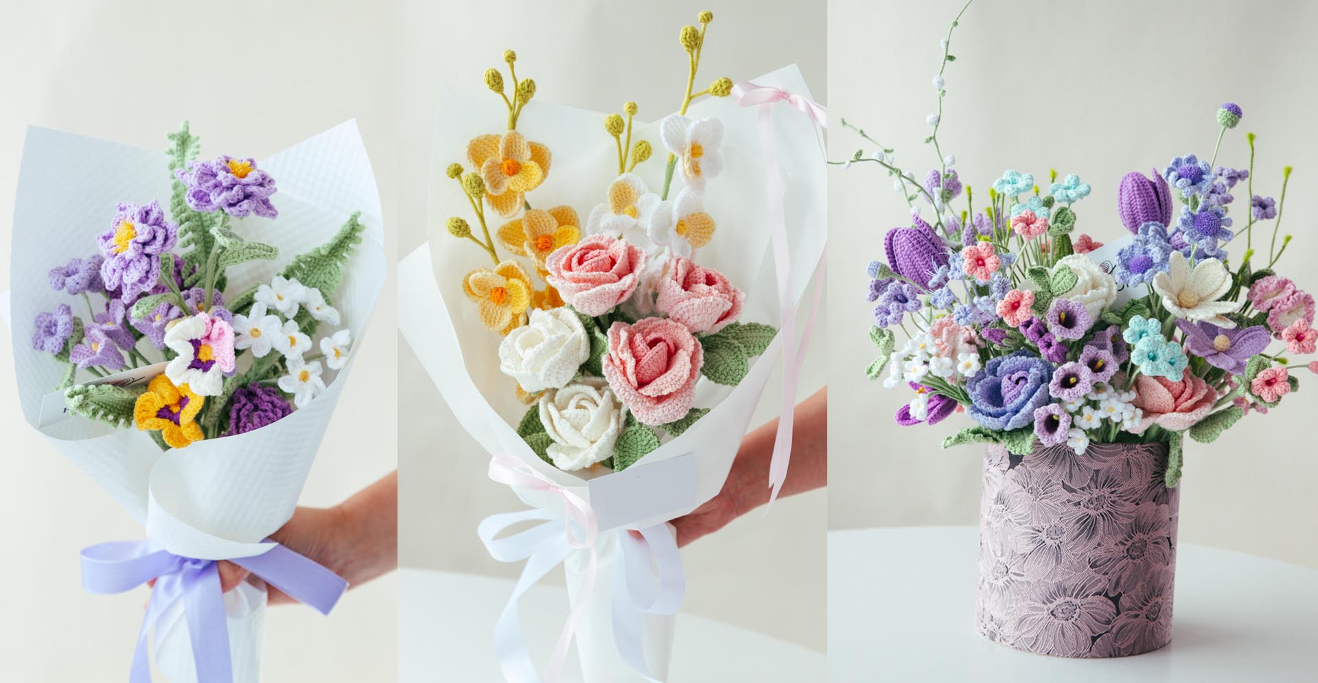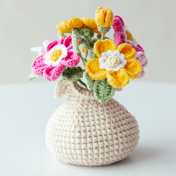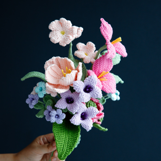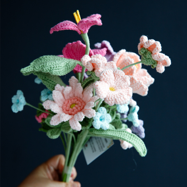 “Handmade crochet flowers you can mix, match, and love — without the wilting.”